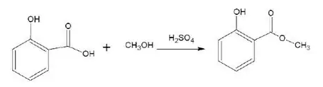 今天小编与大家一块分享下水杨酸是如何制备成水杨酸甲酯的,步骤有以下: 1、将水杨酸加入反应釜中; 2、加入过量的甲醇,搅拌下再加入催化剂硫酸,加热进行反应。 3、反应完毕后,用水洗至中性。 4、再进行蒸馏,先常压蒸出甲醇和残留的水,再减压蒸馏收集馏分即可。 下图是主要反应式: